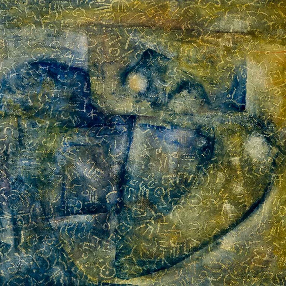 Titel „Es kommt auf mich zu“, 94 x 64 cm, Acryl und Ölkreide auf Papier