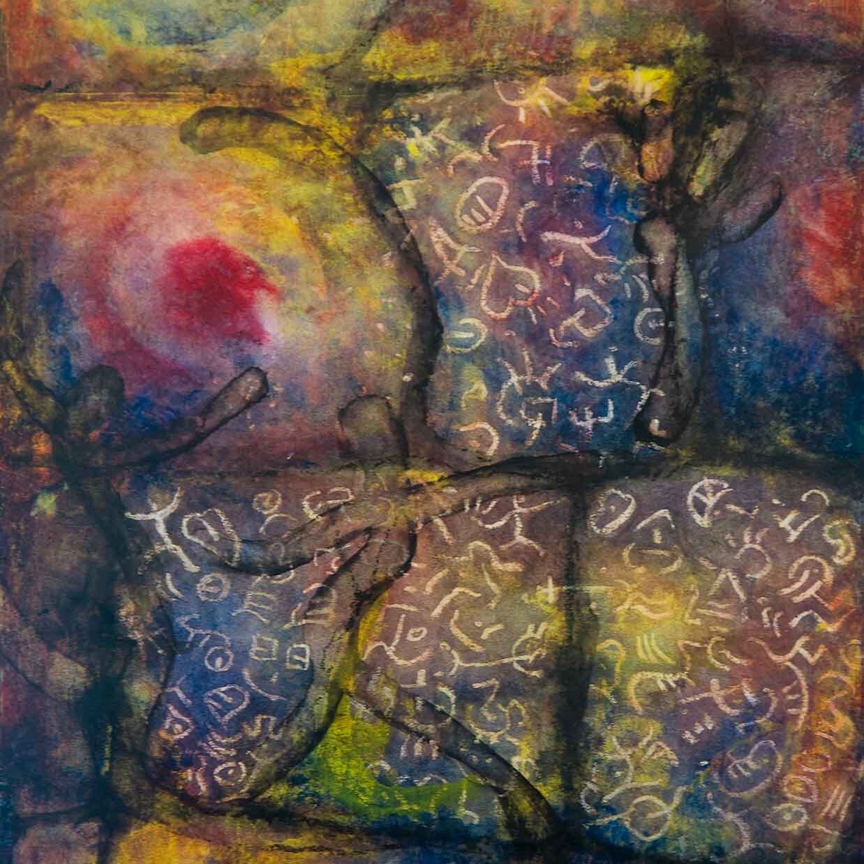 Titel: „Geisterstunde“, 50 x 64 cm, Acryl und Wachs auf Papier
