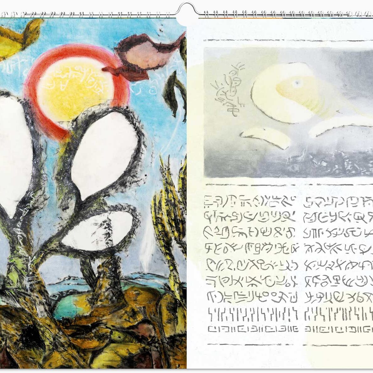Preis inkl. Verpackung und DHL-Versand innerhalb Deutschlands, handsignierte Edition, Format A3 quer: 42 x 30 cm, 250g Papier, Rückpappe und Deckblatt, 12 Monate, Erläuterung, Spiralbindung mit Aufhänger und Griffloch Abholpreis Atelier Weilheim: 28,-